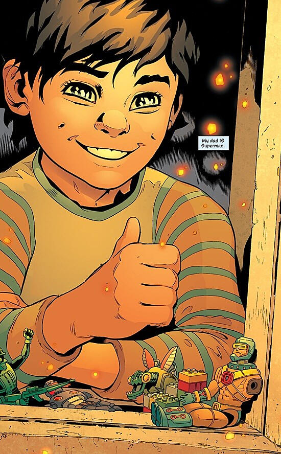 Jon was later on introduced to Damian Wayne, the current Robin who was also Batman's son. The two would go off on adventures as the Super Sons. The name "Super Sons" were given to them by Alfred, the butler to the Wayne Family.
